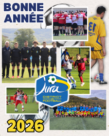 À l’aube de l’année 2026, le District du Jura de Football se projette avec ambition et enthousiasme. Je vous souhaite à toutes et à tous une excellente santé, beaucoup de plaisir dans vos pratiques respectives et une nouvelle année encore plus enrichissante, placée sous le signe du partage et de la passion.